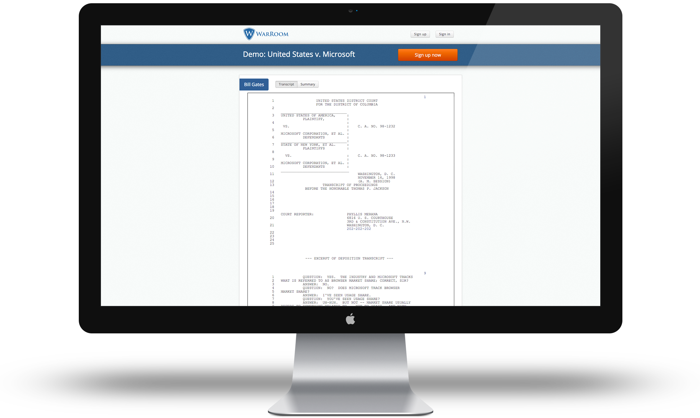With a focus on ease-of-use, we built a web-based platform with a dead simple way to upload your case documents and start annotating. The search and transcript annotation features help lawyers save time when looking to recall specific pieces of testimony that might be relevant during the trial. Being able to group information by topic is a powerful way to cross-reference crucial evidence and uncover key case insights.