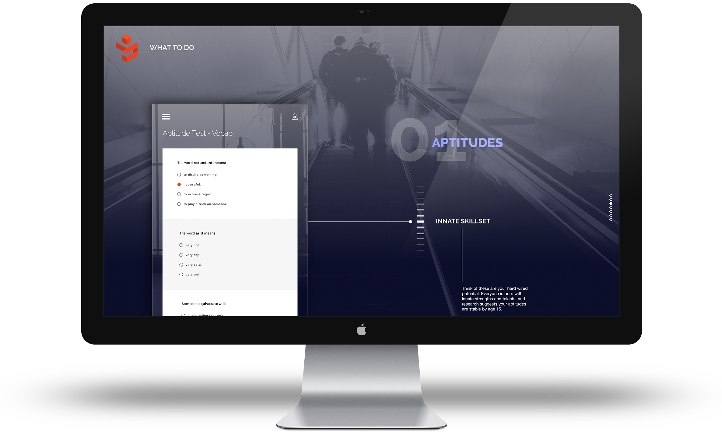 2. Cross reference psychological, aptitude or preferential data to guide each user to make decisions surrounding choice of work/vocation, work style, companion, extra-curricular activities, events to participate in, etc.